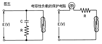 當將干簧管用于電容性負載例如電容器、白熾燈或者長電纜(結束)時,其觸點將受到大浪涌電流地沖擊。因此建議采用浪涌抑制器或者限流電阻保護電路(見圖五)。