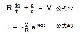 公式#2 和公式#3 陳述了一個(gè)電容電路的電壓和電流,而公式#3 是陳述電容性的放電比率