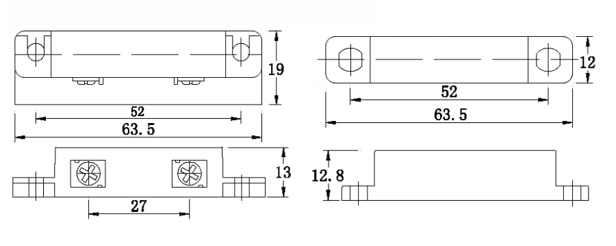 4)、在安裝過程中,表面貼裝時干簧管的觸點位置與磁鐵的磁力線最高點一定要平行安裝;但在嵌入式暗裝時,磁鐵和干簧管兩部份要相向平行在一條線上,這樣才可以取得最佳的感應距離。且兩部份最好無間隙安裝,間距越小越好,最大間隙不應超過5mm(卷簾門除外)。如果錯位安裝將導致啟動感應距離的縮短,甚至感應不到任何信號的時候,就會導至開關失靈。