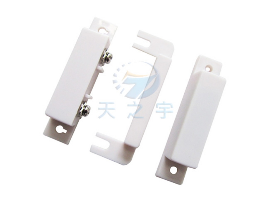2)、門磁開關、窗磁開關一般安裝在門/窗的頂部不易被接觸的地方,磁鐵部份安裝在移動的門或者窗上,開關部分安裝在固定的門/窗的框架上。但下裝式卷簾門磁開關部份最好埋在地下,磁鐵部份安裝在可移動的卷簾門的下部邊緣,可配支架調節啟動感應距離。