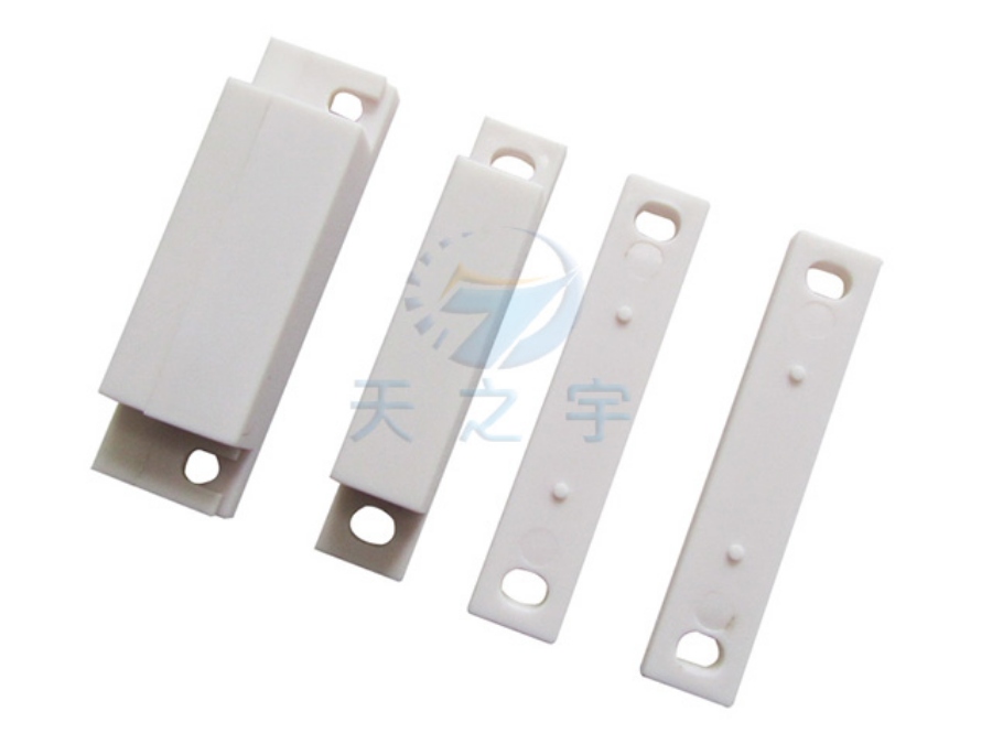 2)、門磁開關、窗磁開關一般安裝在門/窗的頂部不易被接觸的地方,磁鐵部份安裝在移動的門或者窗上,開關部分安裝在固定的門/窗的框架上。但下裝式卷簾門磁開關部份最好埋在地下,磁鐵部份安裝在可移動的卷簾門的下部邊緣,可配支架調節啟動感應距離。