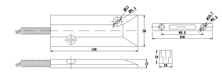 外形尺寸 | 線邊106X38X10mm 磁邊106X16X16mm |