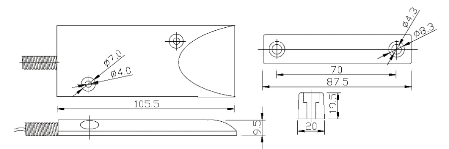 外形尺寸 | 線邊:105.5x47.5x9.5mm磁邊:88x20x20mm |