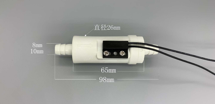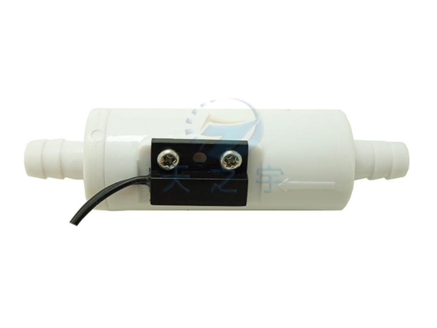 塑料型插管水流開關(guān),利用水流推動里面塑料閥芯,使閥芯上面磁鐵靠近表面黑色感應(yīng)器里面干簧管,兩者配合輸出開關(guān)量觸點信號0/1,當水流停止或者五流量情況下, 塑料閥芯自動復位磁鐵遠離干簧管斷開信號。